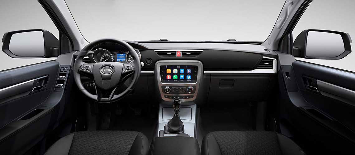 بهویژه که نمای روبروی این خودرو از اشکال هندسی مختلف در طراحی چراغها و جلوپنجره به نحوی مناسب بهره گرفته تا چهرهای قاطع و متناسب با هیبت وانت kmc را مقابل چشمان بینندگان قرار دهد. در نمای جانبی انحنای خطوط بیشتر میشود و ظاهری آرامتر و البته متناسب با فرم پیکاپهای خانوادگی را به نمایش میگذارد. درون محفظه بار هم فضایی معادل ۱۵۲۰ x ۱۵۲۰ x ۴۷۰ میلیمتر در اختیار اسباب و لوازم شما قرار خواهد گرفت تا بتوانید یک سفر آفرودی تمام عیار و بدون کموکاست ازلحاظ لوازم را تجربه کنید.